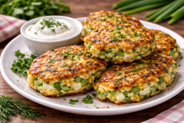 Приготовление: отварные яйца мелко нарезают, зелёный лук измельчают. Добавляют сырое яйцо, муку, тёртый сыр и соль, хорошо перемешивают. Ложкой выкладывают массу на разогретую сковороду и обжаривают с двух сторон до золотистой корочки. Подают горячими со сметаной — получается просто, быстро и очень вкусно.