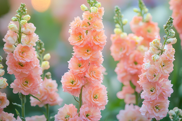 Посадите у забора величественный дельфиниум сорта Корал Сансет (Coral Sunset) — и всё лето ваш сад будет утопать в сиянии закатного неба. Этот многолетник покоряет высокими, стройными свечами соцветий, окрашенными в изысканную гамму тёплых кораллово-персиковых и лососевых оттенков. Он станет безусловной доминантой любого цветника, создавая потрясающий вертикальный акцент и притягивая восхищенные взгляды.